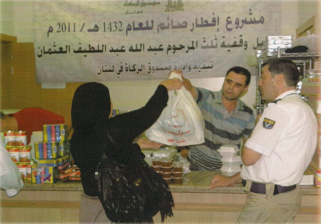 ضمن الجهود المتواصلة لثلث المرحوم عبدالله عبداللطيف العثمان في دعمها للمشاريع الخيرية في مناطق مختلفة من العالمين العربي و الإسلامي , فقد ساهم الثلث الخيري في تنفيذ مشروع ولائم الإفطار لعام 1432 هـ الموافق للعام 2011 م في جمهورية لبنان الشقيق . و قد بلغ قيمة التبرع مبلغ و قدره 13,757.5 د.ك لصالح تنفيذ مشروع ولائم إفطار الصائم الذي تولى تنفيذه صندوق الزكاة دار الفتوى بإشراف بيت الزكاة . و قد استفاد من المشروع و لله الحمد 19,961 صائم حيث بلغت قيمة الوجبة الواحدة 2.47 دولاراً . و إننا في هذا المقام ندعو الله سبحانه و تعالى أن يمن بالصحة و العافية على كل من شارك في تنفيذ هذا المشروع من إخوتنا في دولة الكويت و إخوتنا في دولة لبنان و يؤجرهم جميعاً عظيم الأجر و الثواب , و ندعو بعظيم الرحمة و واسع المغفرة للمرحوم عبدالله عبداللطيف العثمان الذي أسس لهذا العمل الخيري الذي ينمو عاماً بعد عاماً في الخير و العطاء .